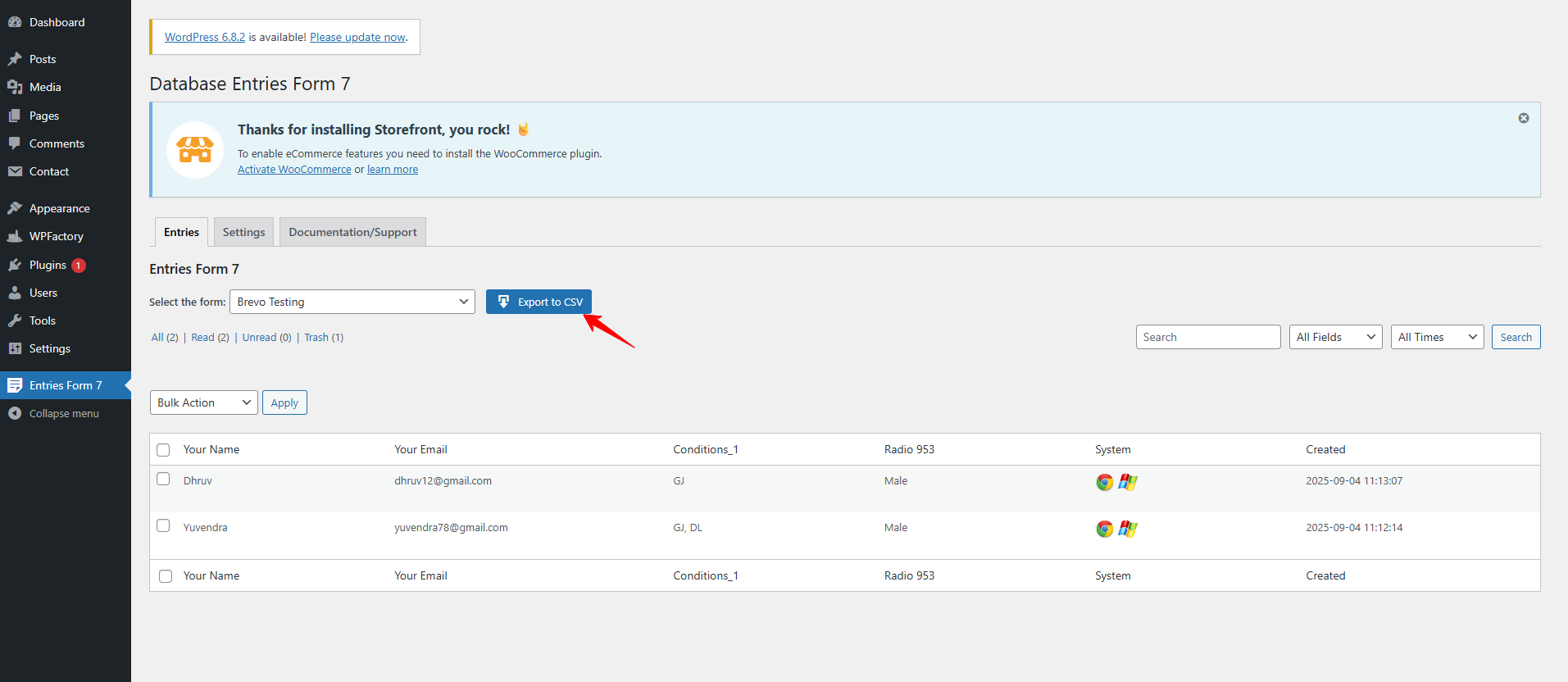 * Choose a form and download its entries as a CSV file.